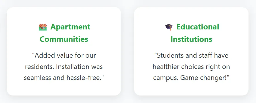 Boost wellness and convenience for your employees, members, or guests at zero cost to you.