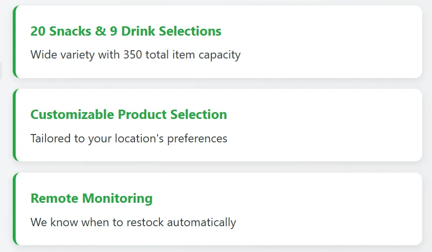 Yes! We’ll work with you to customize the selection based on your employees, members, or visitors’ preferences. We can adjust your lineup over time to keep everyone happy.